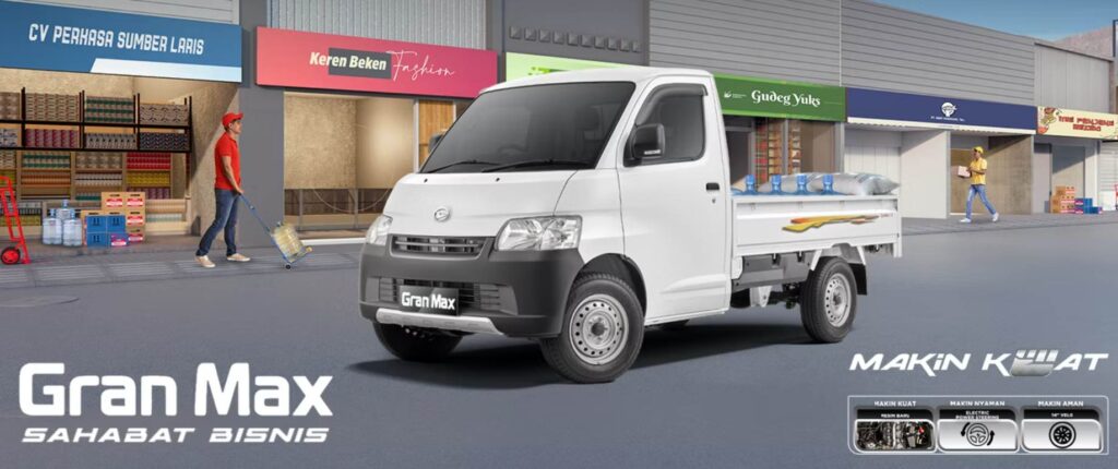 GRAN MAX PICK UP hadir dengan dashboard yang lebih modern dan terlihat semakin elegan. Didesain untuk menjadi Sahabat Bisnis, GRAN MAX PICK UP semakin siap menemani Sahabat dengan ruang lebih luas untuk 3 orang, hingga desain terbaru door arm rest dan cup holder untuk memudahkan Sahabat dalam perjalanan bisnis.